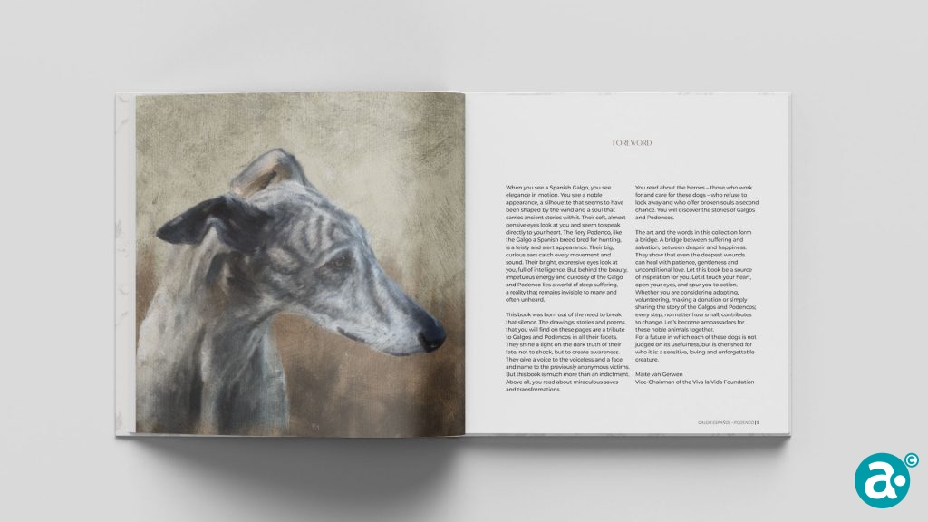 De uitgave is tot stand gekomen met steun van de Viva la Vida Foundation, die zich inzet voor dieren in nood. De volledige opbrengst van het boek gaat naar Spaanse opvangcentra die zich dagelijks inzetten voor het redden en verzorgen van wind- en jachthonden. De stichting beschouwt het boek als een eerbetoon aan de dieren zelf, hun adoptieouders en de vele mensen die zich onvermoeibaar inzetten voor hun welzijn.